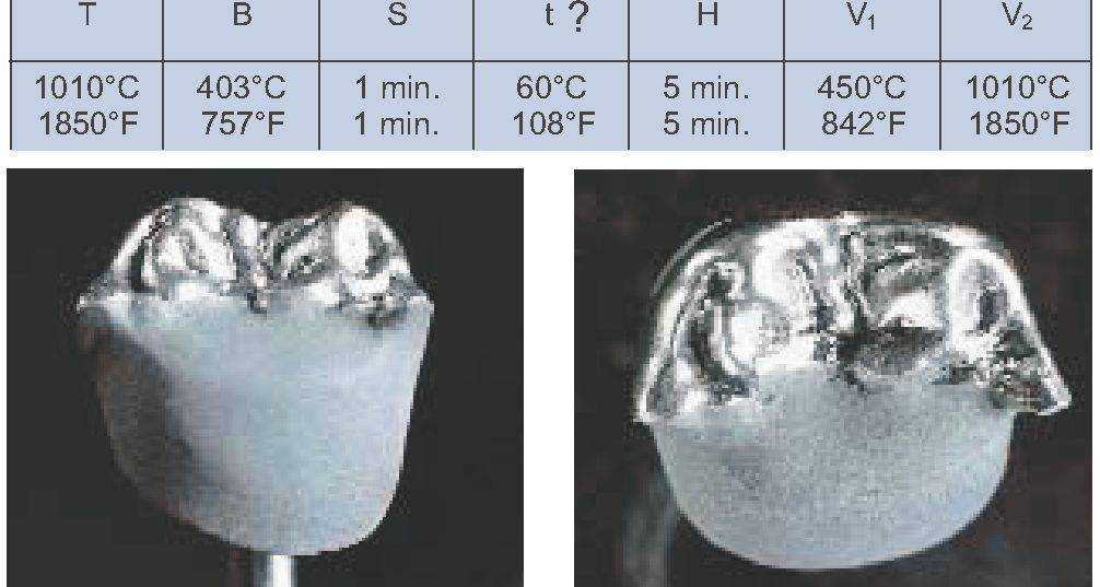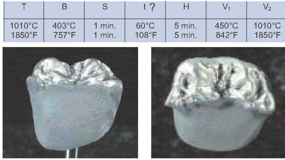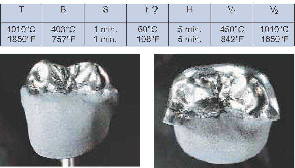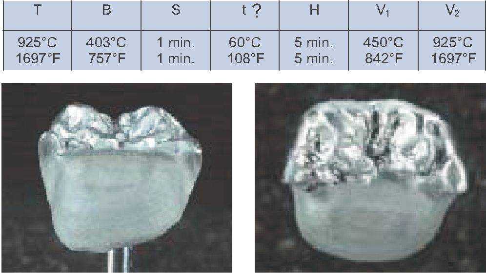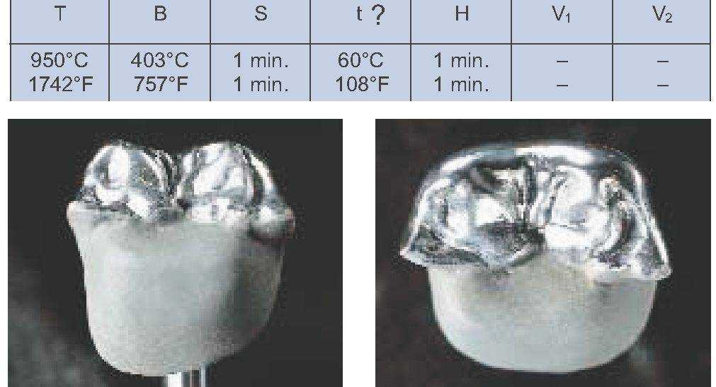 При использовании другой печи для обжига эти параметры должны быть адаптированы соответствующим образом. Подъем температуры при втором обжиге опакера не может быть ниже 80 °С/Мин.