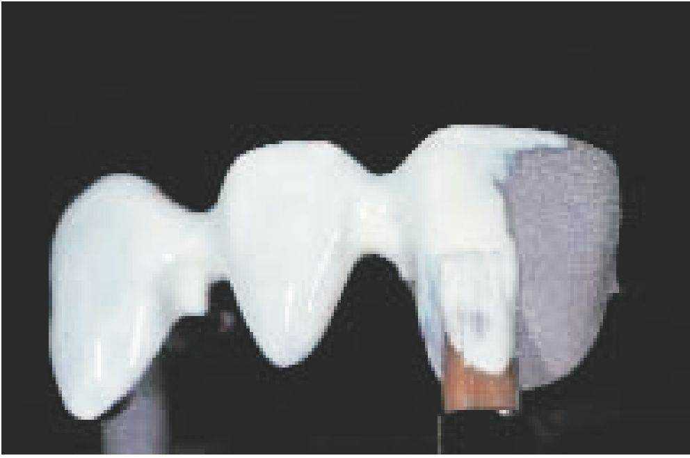 Готовый, прошедший обжиг опакер на разборной модели.