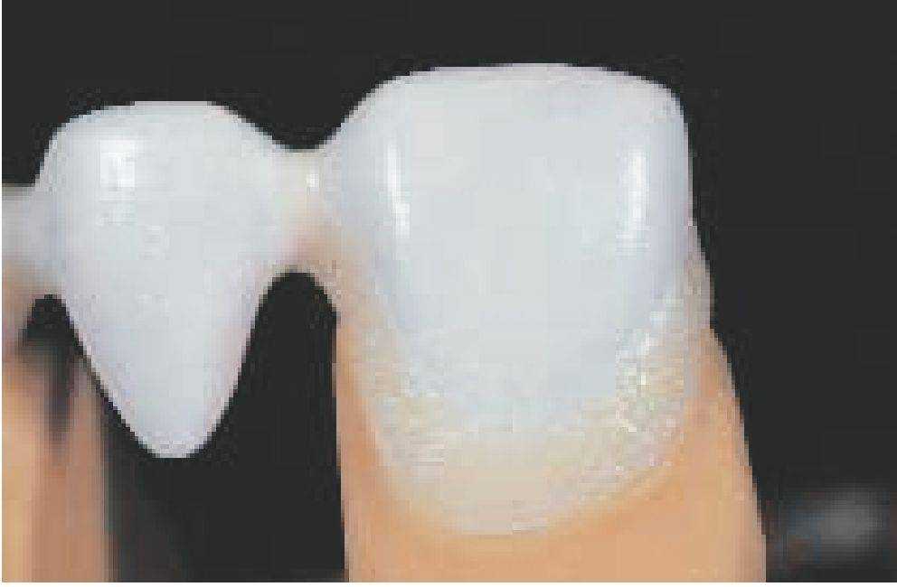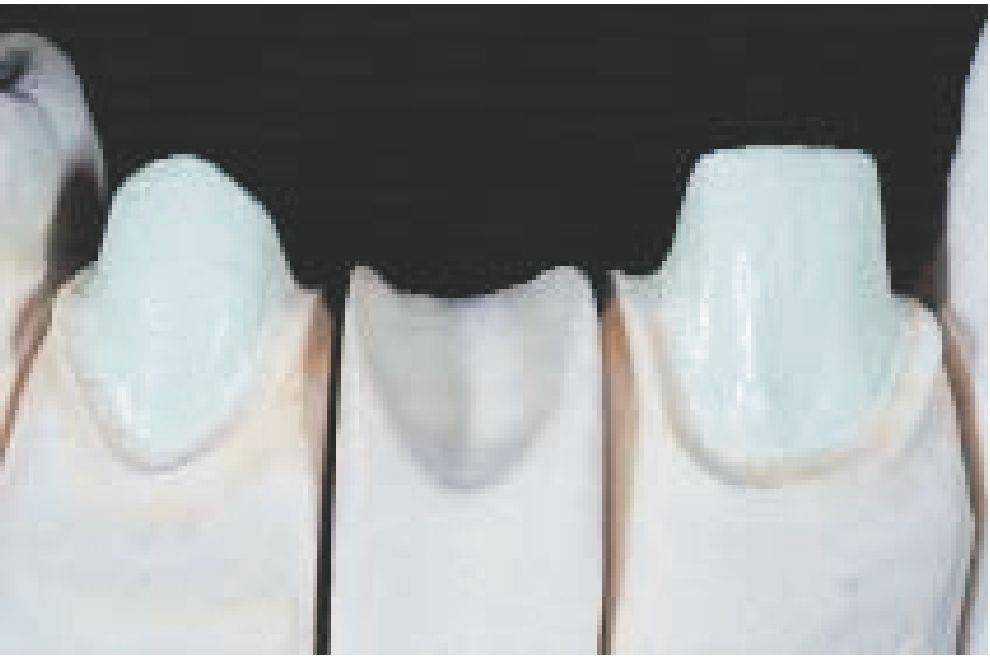 усадкой при последующих обжигах дентина и массы режущего края.