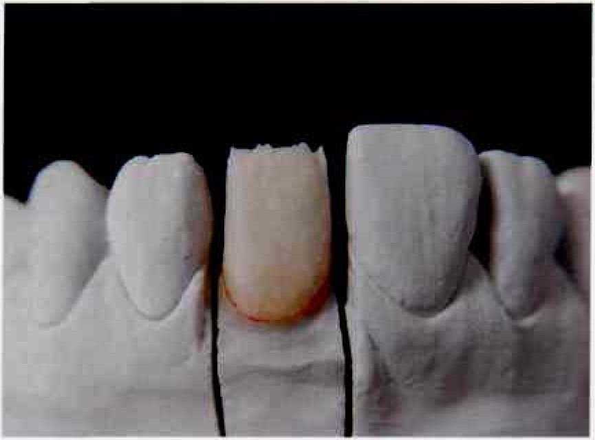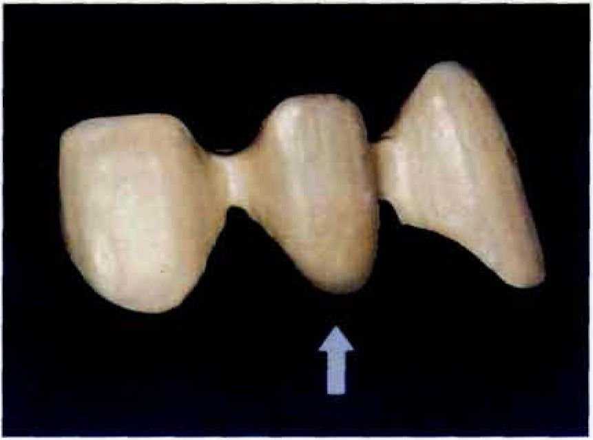 Если у каркаса многоединичного мостовидного протеза отдельные протезные единицы отличаются по высоте и толщине, их можно выровнять путем нанесения опакового дентина, что позволит сохранить равновесие между пветом и прозрачностью в области режущего края или поверхности окклюзии воспроизводимых зубов.