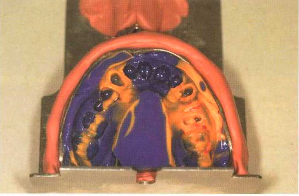 Подготовка к изготовлению моделей по системе Zeiser-Modell требует особого внимания, так как правильное расположение оттиска на этом этапе в дальнейшем определяет точность расположения пинов в плате. Оттискный материал не должен выходить за края ложки (или его нужно срезать), нельзя, чтобы он был продавлен, потому что эти «деформации» отрицательно влияют на точность оттиска. Это особенно важно для гидроколлоидных оттисков, но это должно быть правилом при использовании всех остальных видов оттисков. Тогда результатом является точная работа.
