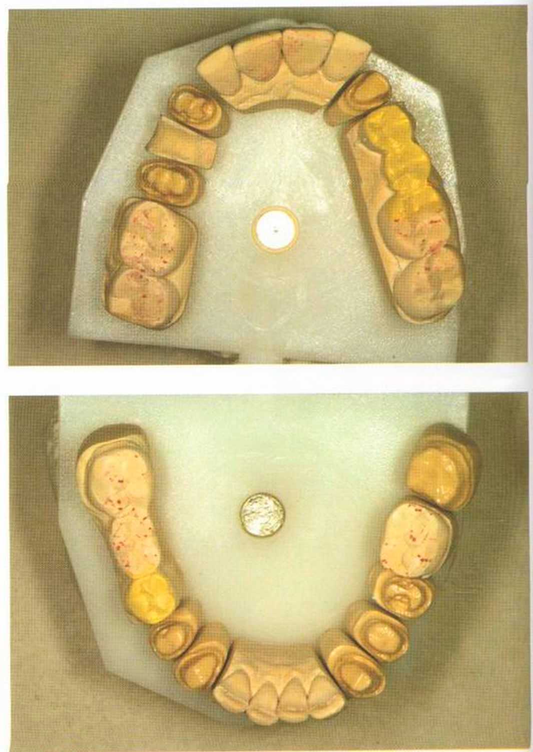 Подготовленные таким образом штампики имеют более прочную поверхность, это имеет большое значение при изготовлении золотых каркасов — при припасовке заготовок не царапается штампик. В противном случае коронка никогда не будет соответствовать культе зуба в полости рта пациента.