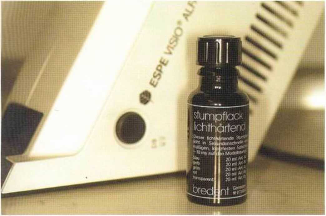 Для предварительного светоотверждения этого лака я использую аппарат ESPE ALFA. Это исключает появление пузырьков при дальнейшем отверждении в аппарате ESPE BETA VARIO.