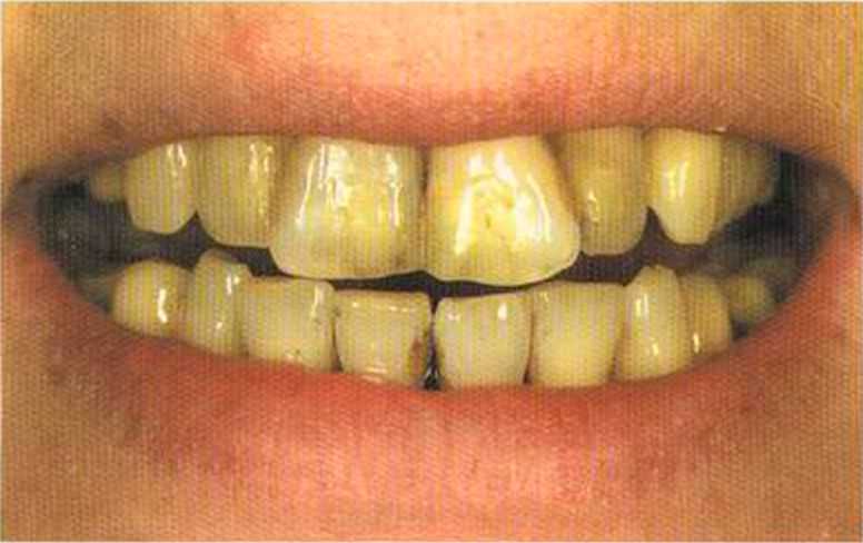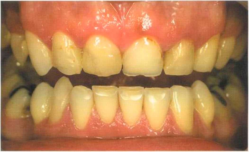 Эта пациентка пришла в нашу клинику с единственным желанием — иметь красивые зубы. Ей не нравились пломбы в области фронтальной группы зубов, которые бросались в глаза, не нравились два центральных резца, имеющих вид «крыльев бабочки ». Но проблема возникла, когда речь зашла о стоимости лечения. Сначала мы думали об изготовлении цельнокерамических конструкций или использовании сплава с высоким содержанием золота. Но это оказалось слишком дорого для пациентки. Остался еще один вариант — лечение с использованием каркаса из неблагородного сплава, которое мы здесь подробно и опишем.