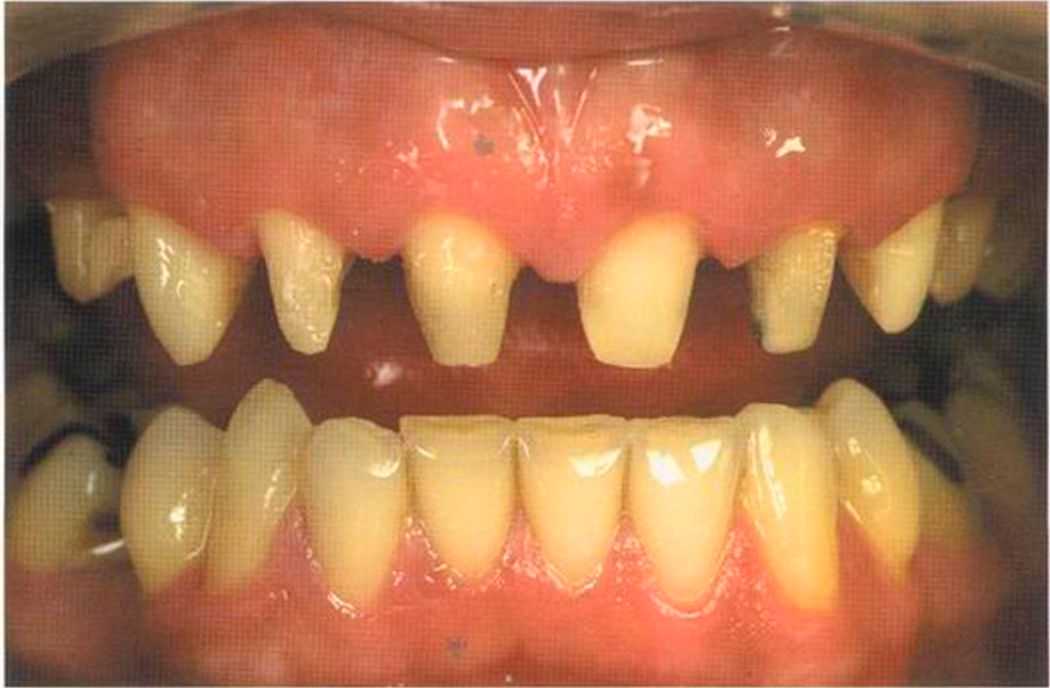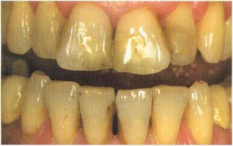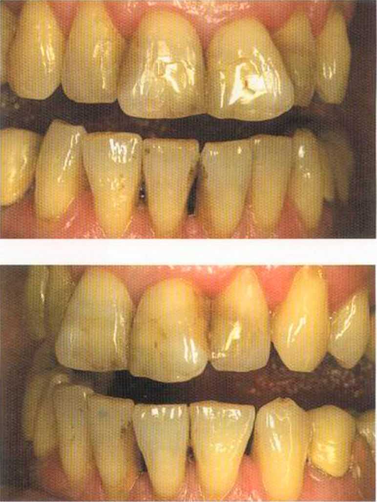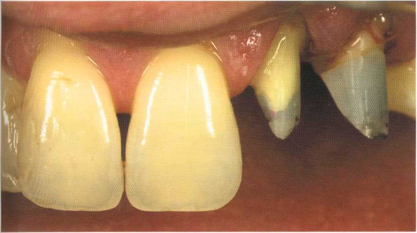 Бывают ситуации, как показано на следующих примерах, когда невозможно использовать оба выше названных материала из-за высокой стоимости. Я придерживаюсь мнения, что недопустимо на «дешевом» материале изготавливать плохие облицовки. Образование окисной пленки на неблагородных сплавах готовит нас к определенным, заранее известным нам трудностям при изготовлении облицовок. Но небольшие хитрости помогают справиться с этими проблемами. И керамическая работа получается не хуже, чем на сплаве с высоким содержанием золота или на безметалловом каркасе. Свою концепцию послойного нанесения керамики я представляю в одной главе.