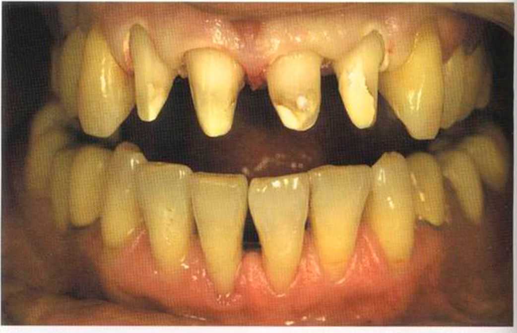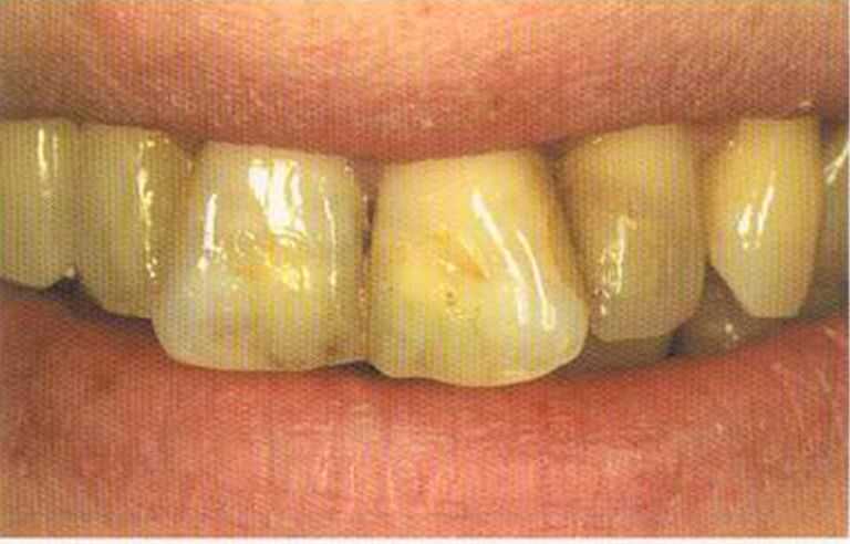 Отпрепарированные зубы до снятия слепка. Отпрепарированы небольшие уступы.
