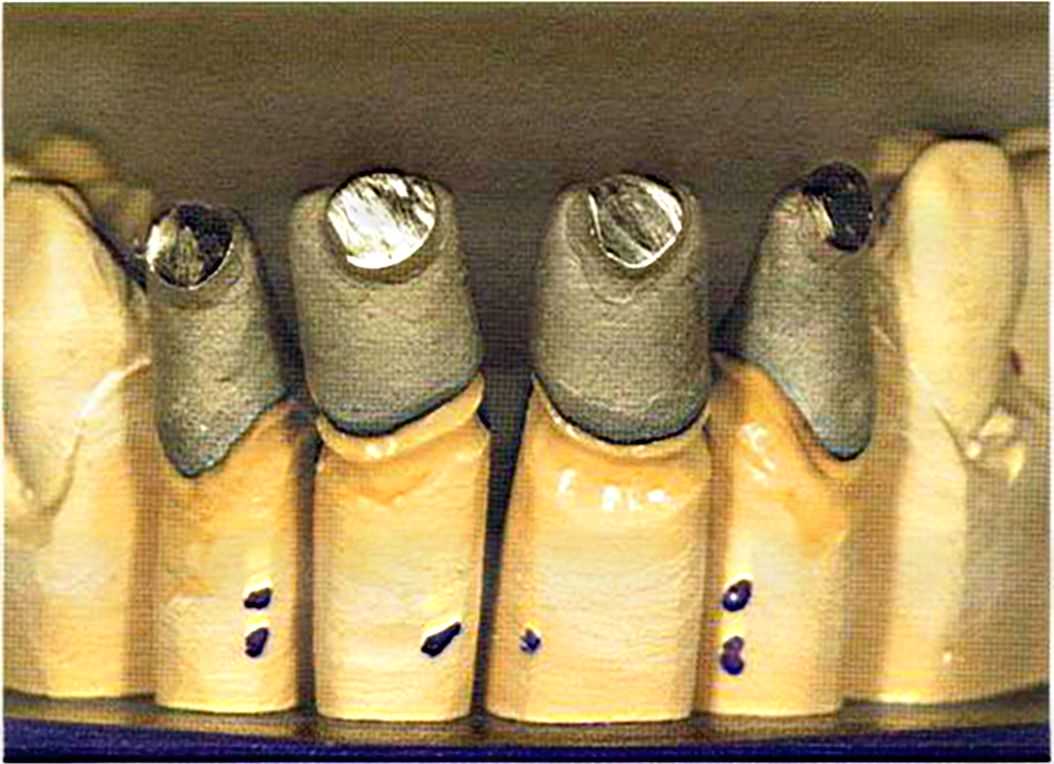 При использовании неблагородных сплавов лучше пусть слой будет больше требуемого, чем недостаточным, чтобы не возникло проблемы с цветом.