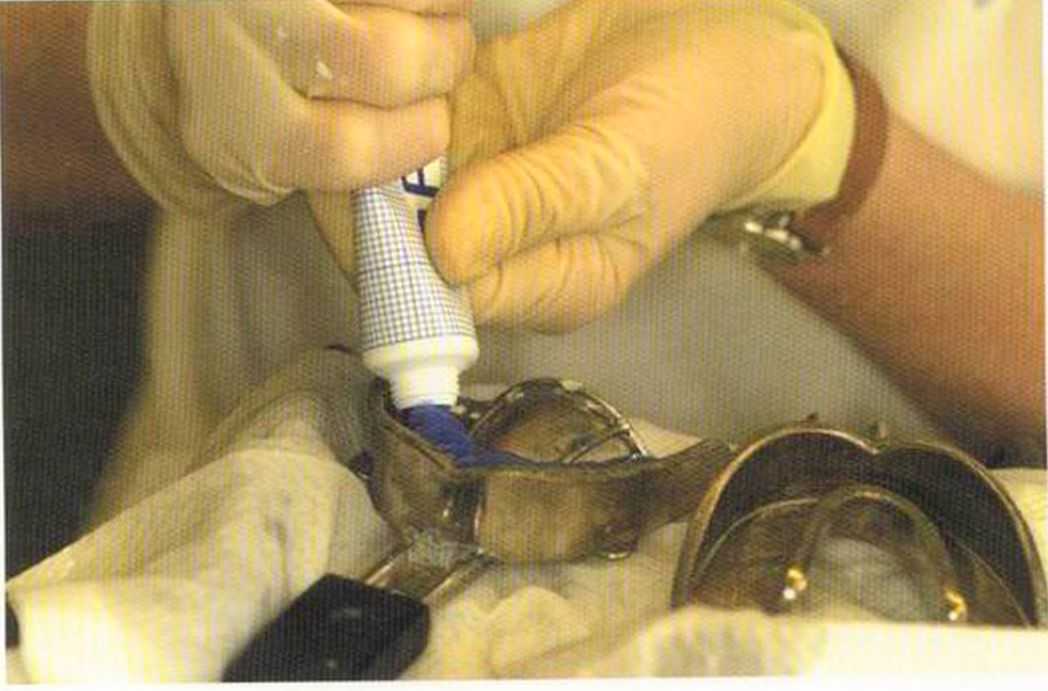 Цемент замешивается на охлажденной стеклянной пластине до консистенции жидкой сметаны.
