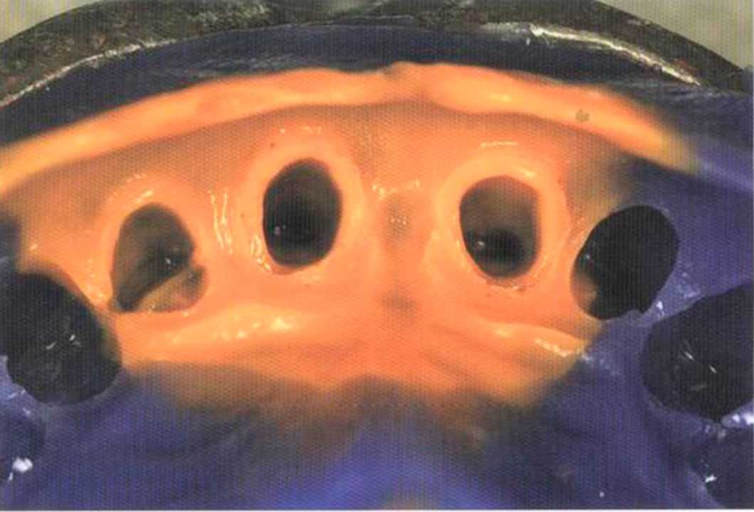 После синтеризации делаем стеклоинфильтрационный обжиг. Здесь действуем, как при работе с каркасами мостовидных протезов. Очень важно, чтобы объекты были хорошо проинфильтрировапы. От этого зависит их стабильность.