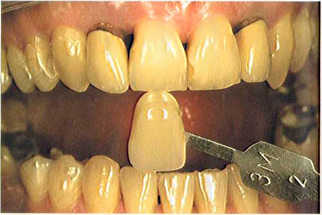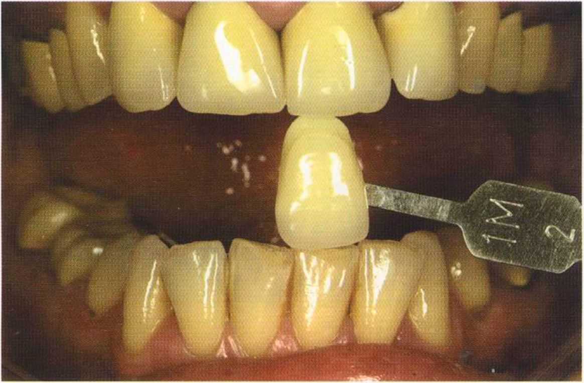 После того как мы определит цвет зуба, решено быо сначсьа изготовить одну коронку.