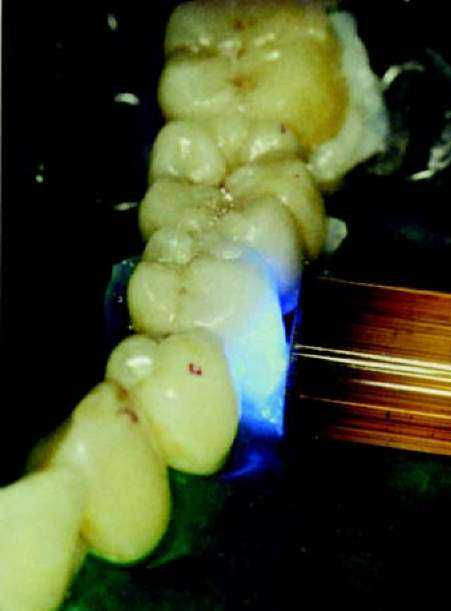 | Рис. 85. Полимеризация материала для фиксации моста. |