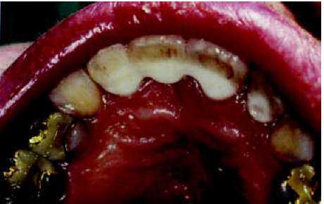 | Рис. 111.... еще со следами раздражения на деснах от временного протеза. |