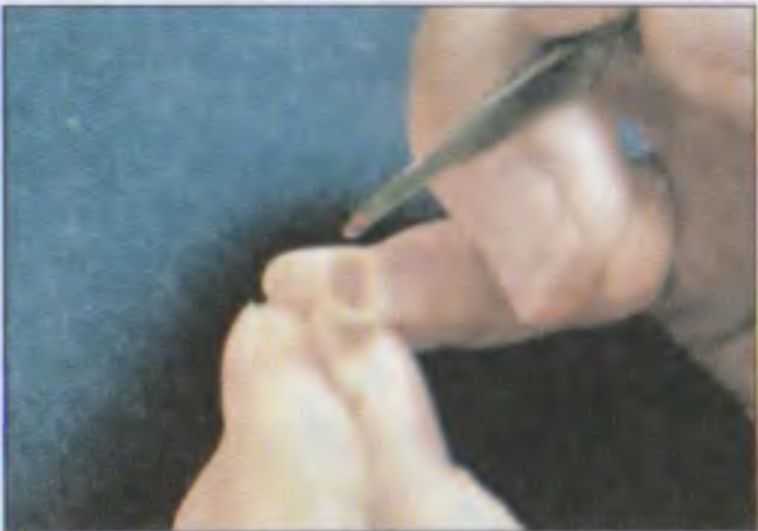 Рис. 107. Моделирование при шеечной части колпачка из воска пом (рис. 109). Коррекция толщины и фирмы воскового колпачка осуществляется путем наслоения или снятия воска специальным моделировочным инструментом, например глазным скальпелем.