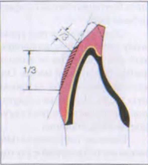Если апроксимальные поверхности в последующем не имеют достаточного слоя эмали, то коронки теряют присущий им объем и становятся похожими на «фортепианные клавиши». Для предупреждения этой ошибки при срезании денти-