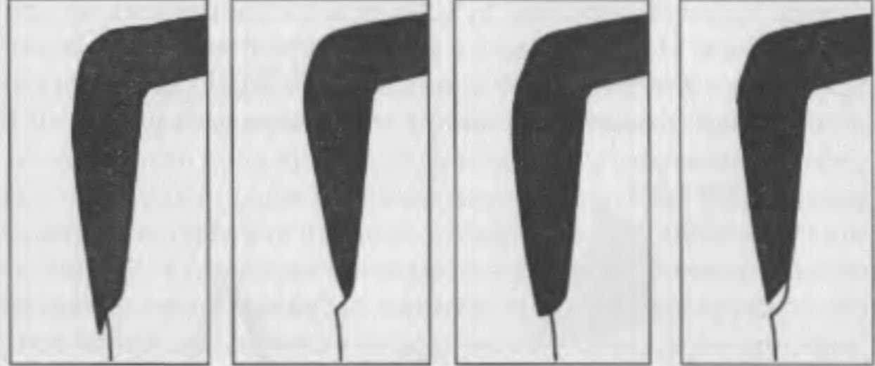 Боковые (апроксимальные) поверхности срезают аналогично вестибулярной с учетом их анатомической формы. Кроме того, на этом этане моделируются так называемые пальцевидные бороздки, которые хорошо заметны под эмалью естественных зубов (мамелоны). На режущем крае им соответствуют волнообразные возвышения, имеющие большую степень прозрачности. Поскольку объем дентиновой массы после срезания уменьшается, следует предусмотреть расположение бороздок иод эмалевым слоем во избежание ошибки в виде несовпадения их с теми, что будут моделироваться из эмалевой массы.