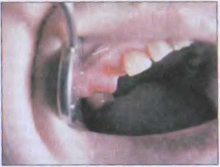 Рис. 129. Кровоточащие язвы слизистой оболочки полости рта. обнаруженные сразу после снятия мостовилного протеза