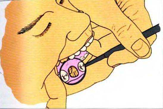 Рис. 1-31. При невозможности оценить качество препарирования с помощью прямого визуального контакта рекомендуется использовать стоматологическое зеркало. Должна быть видна вся граница препарирования в области шейки зуба