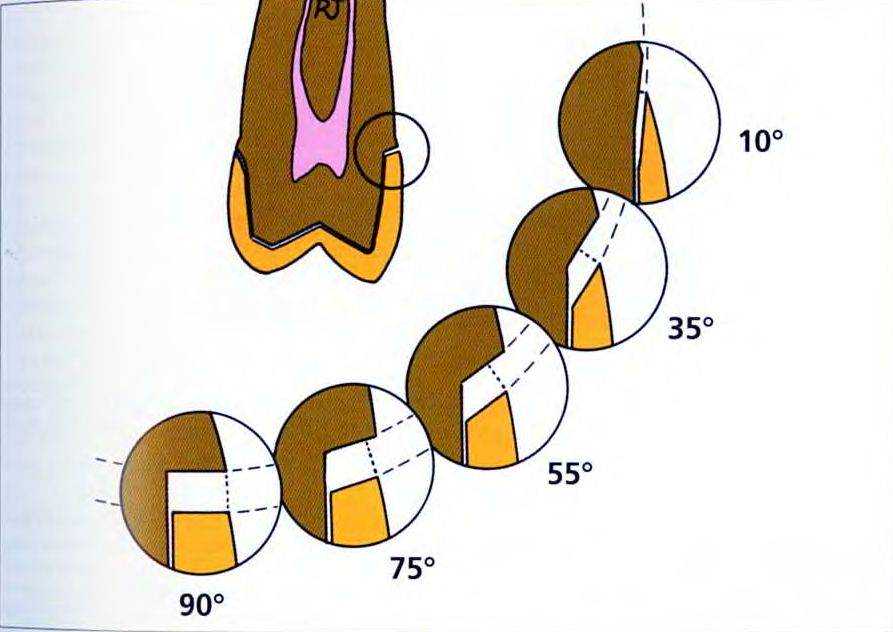 McLean и Wilson отрицают необходимость создания скоса в области керамической облицовки реставрации. Они утверждают, что для достижения более плотного прилегания край реставрации должен заканчиваться под углом 10-20