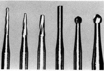 °ис. 3-12. Данные ротационные инструменты также применяются для препарирования зубов: боры № 34, 1/2 и 0,6-миллиметровое сверло