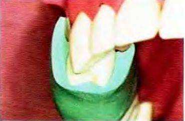 Рис. 5-12. С помощью силиконового шаблона оценивают величину просвета. Максимальный зазор находится в области небного бугорка и постепенно уменьшается по направлению к щечному