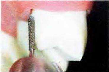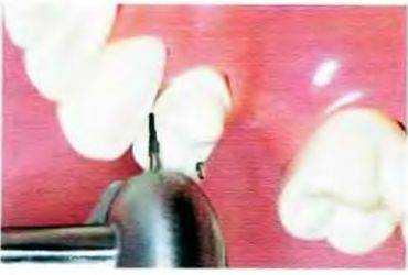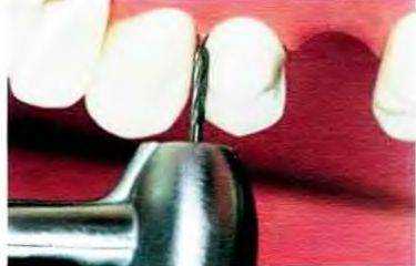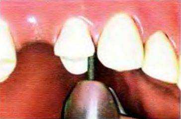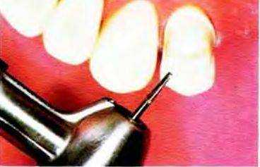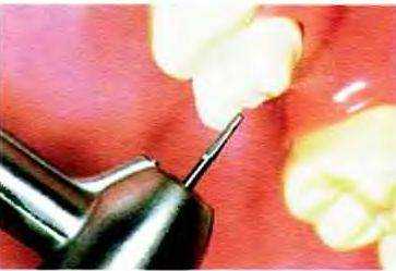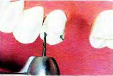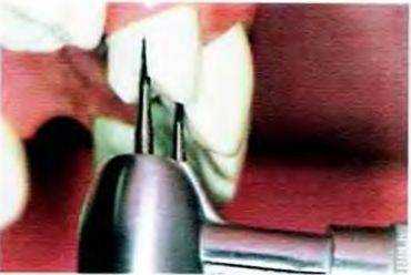 Рис. 5-14. Препарирование язычной осевой поверхности проводят торпедовидным алмазным бором.