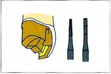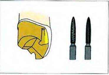 Рис. 5-33. Проксимальные срезы создают пламевидные твердосплавный и алмазный боры.