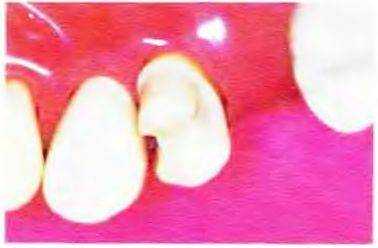Рис. 5-46. Культя зуба, препарированного под трехчетвертную коронку.