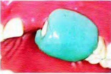 Рис. 7-1. Начинающим стоматологам настоятельно рекомендуется пользоваться силиконовыми шаблонами, позволяющими оценить объем иссечения тканей зуба. Для изготовления шаблона перед началом работы с помощью небольшого количества базисной силиконовой массы необходимо получить оттиск препарируемого зуба и дистально соседнего.