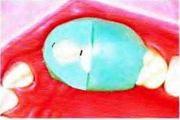 Рис. 7-44. Поперечный силиконовый шаблон позволяет определить объем препарирования язычной поверхности по середине зуба.