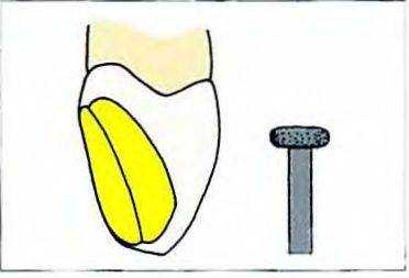 Рис. 7-15. Препарирование проксимальных стенок проводят короткими копьевидным и торпедовидным алмазными борами