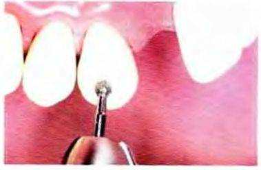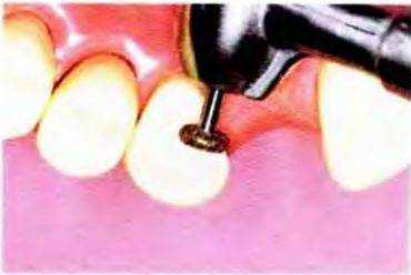 Рис. 7-23. Твердосплавным торпедовидным бором сглаживают придесневую границу препарирования, создавая гладкий, непрерывный, четко выраженный желоб