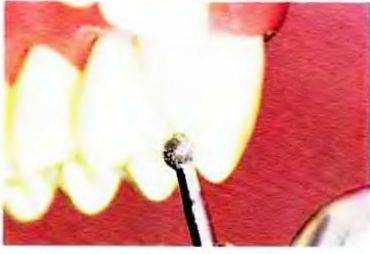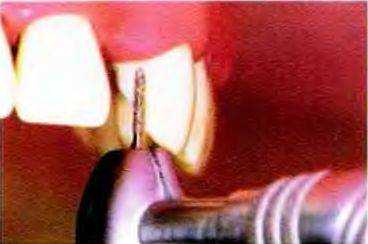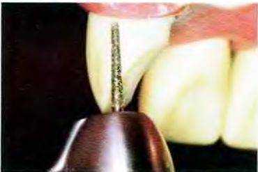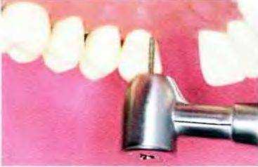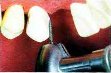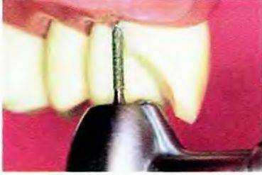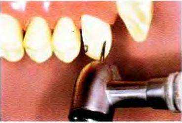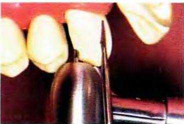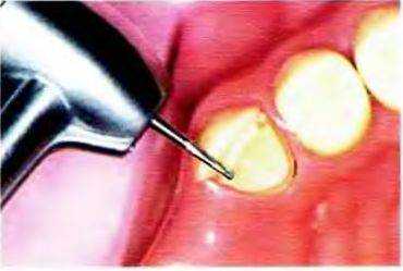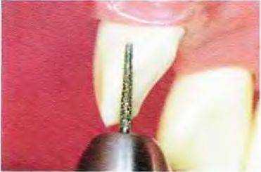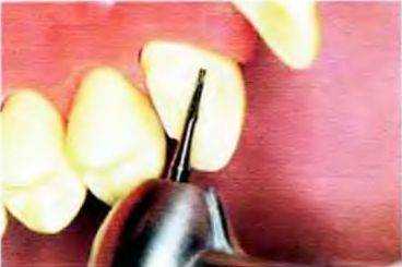 Рис. 7-12. Препарирование язычной осевой поверхности проводят торпедовидным алмазным бором.