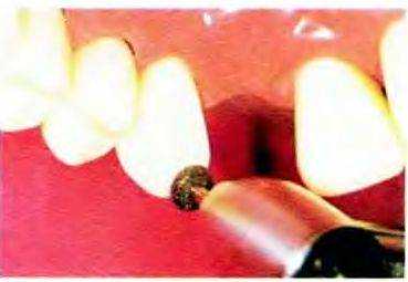 Рис. 7-31. Для создания гладкой поверхности с четко выраженной острой границей препарирования необходимо доработать срез пламевидным твердосплавным бором В придесневой части проксимальной поверхности, обращенной к дефекту зубного ряда, используют только кончик бора