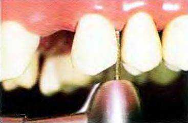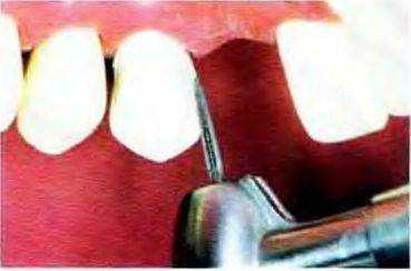 Рис 7-19. Только при перемещении бора в щечную сторону и к десне, одновременно углубляясь в проксимальную стенку, можно провести адекватное препарирование проксимальной поверхности в области вестибулярно-десневого угла.