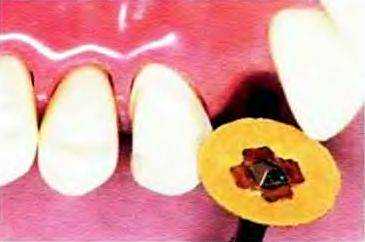 Рис. 7-32. В переднем отделе зубного ряда для создания срезов можно использовать бумажные шлифовальные диски, позволяющие получить более плоскую поверхность. Однако диски могут сглаживать границу препарирования и травмировать пациента.