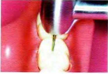Рис. 11-39. Препарирование вдоль центральной фиссуры до противоположного краево о гребня или поперечного гребня продолжак г. если он остался не поврежденным кариесои. Перешеек полости должен иметь ширину ок> ло 1,0 мм