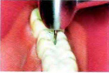 Рис. 11-40. Стенку полости, обращенную i пульпе, выравнивают торцевым твердосплт ным бором N» 957.