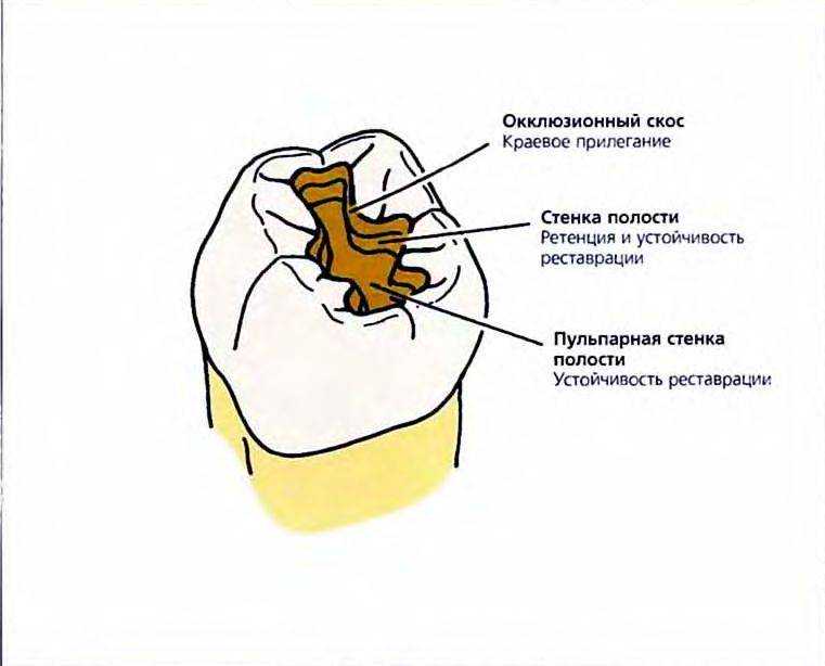 Рис. 11-47. Функциональные элементы культи нижнего моляра, препарированного под вкладку I класса, и их значение