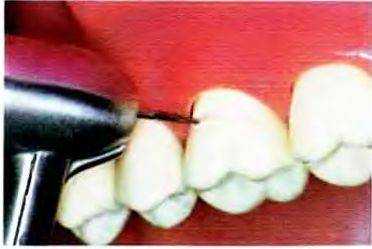 Рис. 11-76. Пламевидным алмазным бором ci здают скос шириной 0,5 мм под углом 45° г всему краю полости