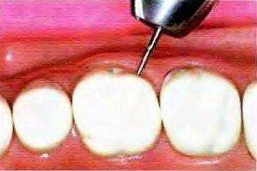 Рис. 11-69. Границу препарированной полости расширяют до углов зуба Если исходное поражение твердых тканей не заходит под десну, то придесневая граница препарирования также должна располагаться выше уровня десны.
