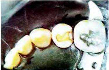 Рис. 11-78. Вестибулярный вид верхнего моля ра после препарирования под вкладку V класс;