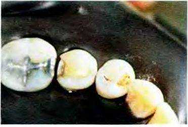 Рис. 11-86. В данном случае, вместо реставр. ции. перекрывающей бугорки зуба и защищающей твердые ткани, была необоснованно использована вкладка I класса, что привело к перелому коронки зуба.