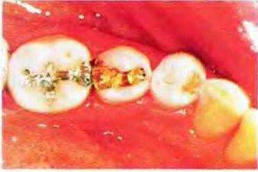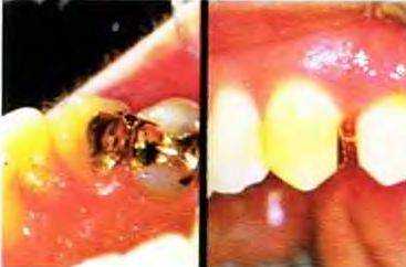 Рис. 11-87. Язычный (слева) и щечный (справз) вид вкладки III класса Необходимо обрати ь внимание на размер реставрации и степень ее выхода на щечную поверхность. Реставрация служит уже 11 лет