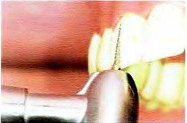 Рис. 13-21. Препарирование язычной поверхности проводят малым колесовидным алмазным бором