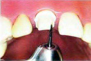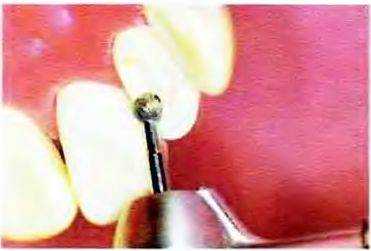 Рис. 13-17. Для препарирования придесневого участка вестибулярной поверхности используют конусный алмазный бор с плоским кончиком