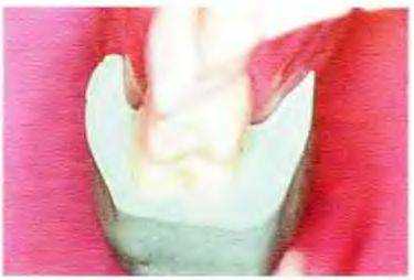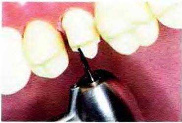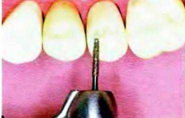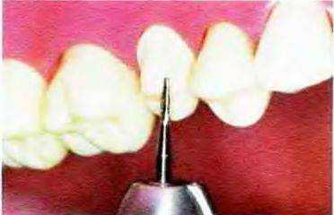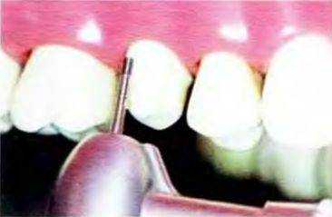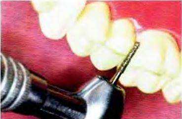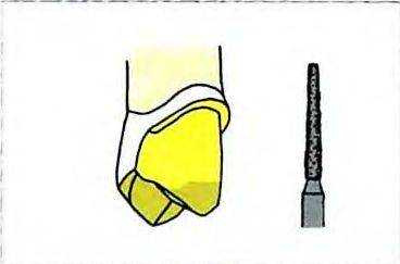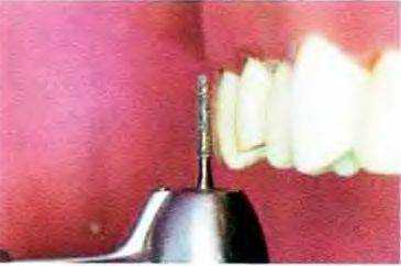 Рис. 14-17. Придесневую часть щечной поверхности препарируют конусным алмазным бором с плоским кончиком