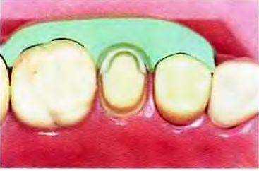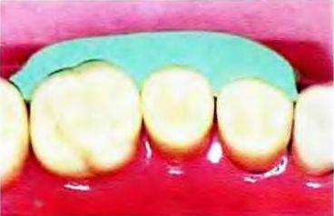 Рис. 14-37. Щечный силиконовый шаблон позволяет проверить достаточность и равномерность препарирования вестибулярной стенки от медиальной до дистальной поверхности