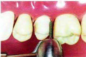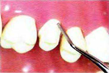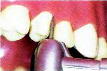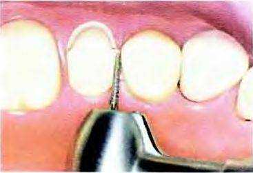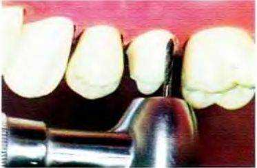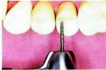Рис. 14-30. Придесневой уступ сглаживают твердосплавным торцевым бором № 957
