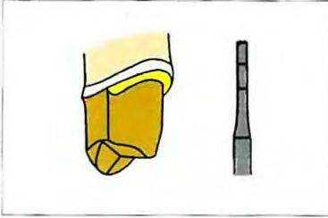 Рис. 14-26. Придесневую границу препарирования (желоб) и прилежащие осевые поверхности полируют твердосплавным торпедовидным бором Такой бор предназначен для полировки поверхностей, которые планируется закрыть металлической частью металлокерамической реставрации.