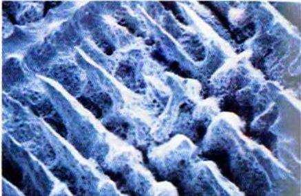Рис. 17-10. На снимке, полученном с помощью сканирующей электронной микроскопии, визуализируется обширная сеть микроскопических поднутрений на поверхности электролитически протравленного металла